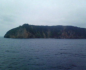 西郷港に入港直前に見えてくる隠岐空港滑走路が設置されている岬。