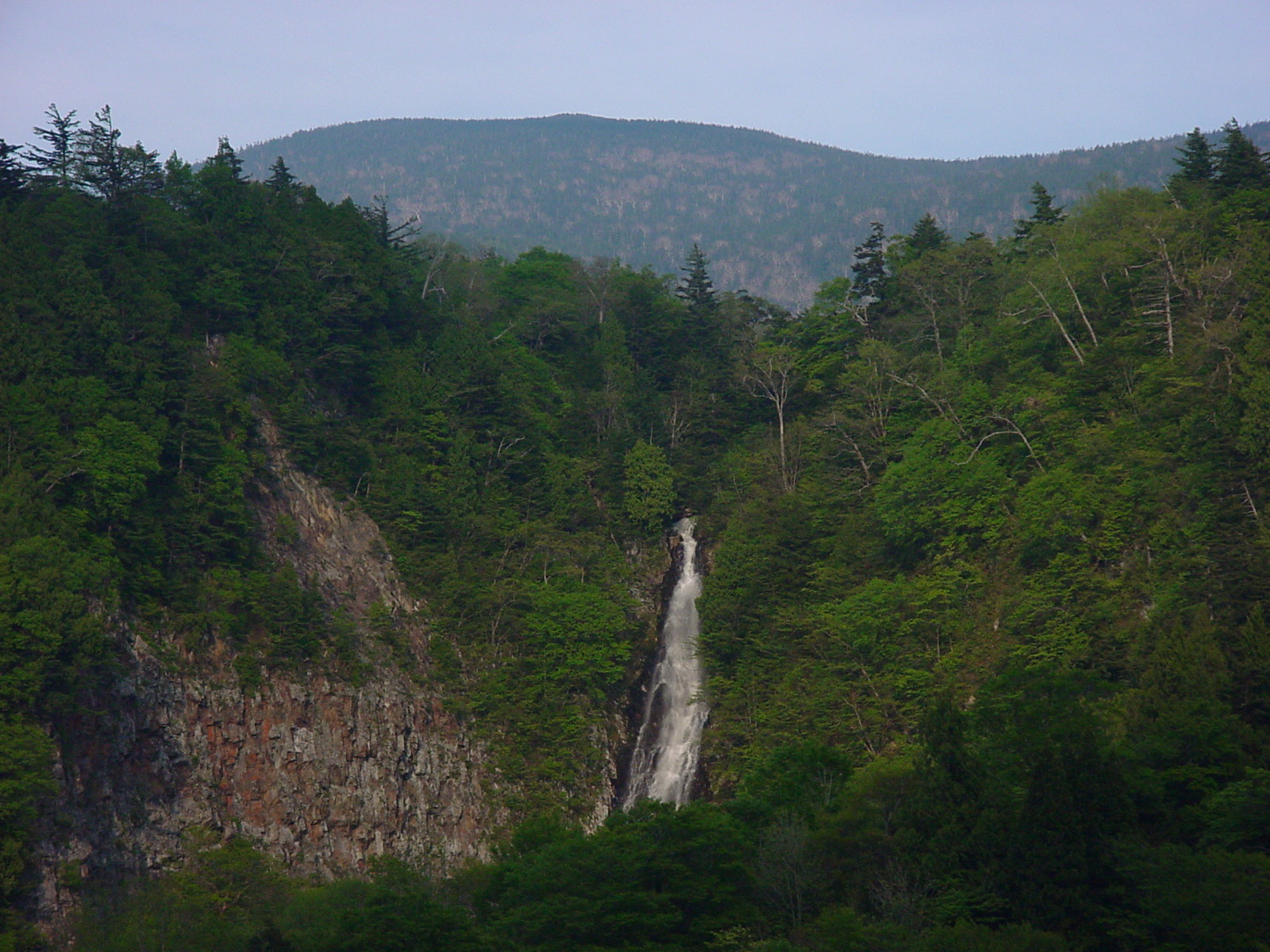左が「赤滝」、右が「黒滝」で山に融けこんだ姿が印象的。