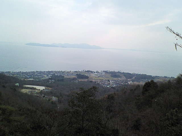 楊梅の滝・雄滝<>展望台の間に琵琶湖を一望できるこの場所が現れる。