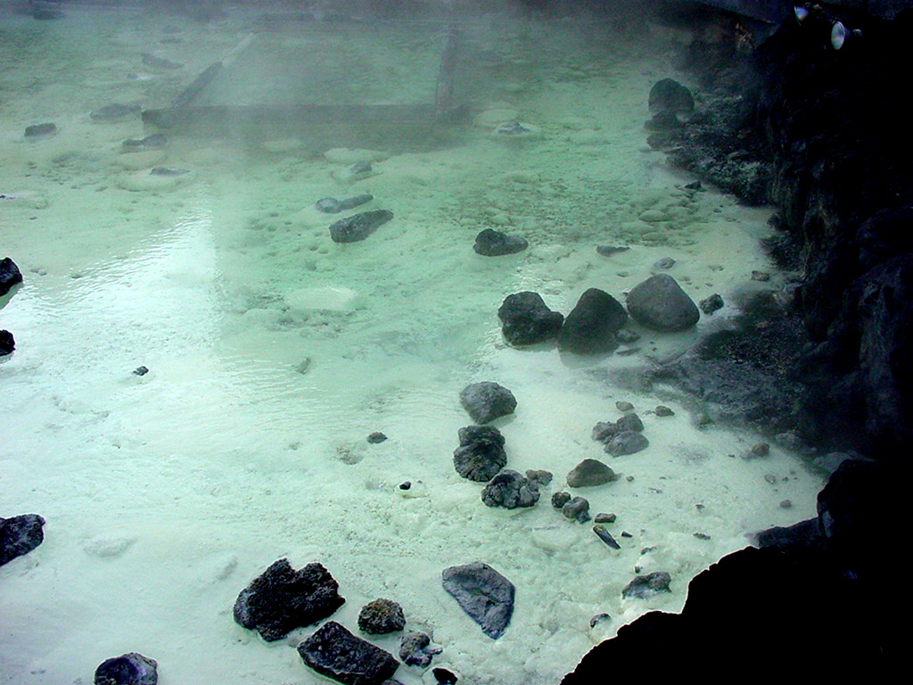 湯の下に沈む白いものが湯の花だ。