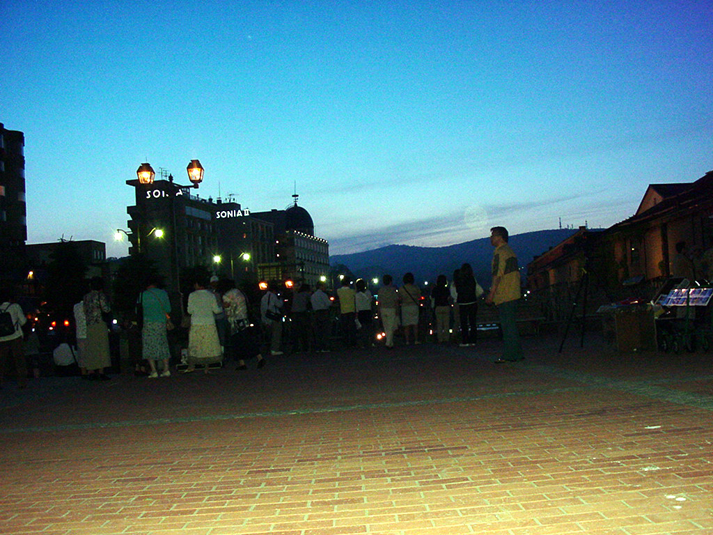 電気バイオリンで大正時代の流行り歌を奏でる中、三々五々集まる人達。