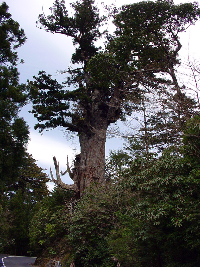 樹高 27.0m 胸高周囲 8.9m 標高 1280m 樹齢 2000年 場所 安房林道沿い