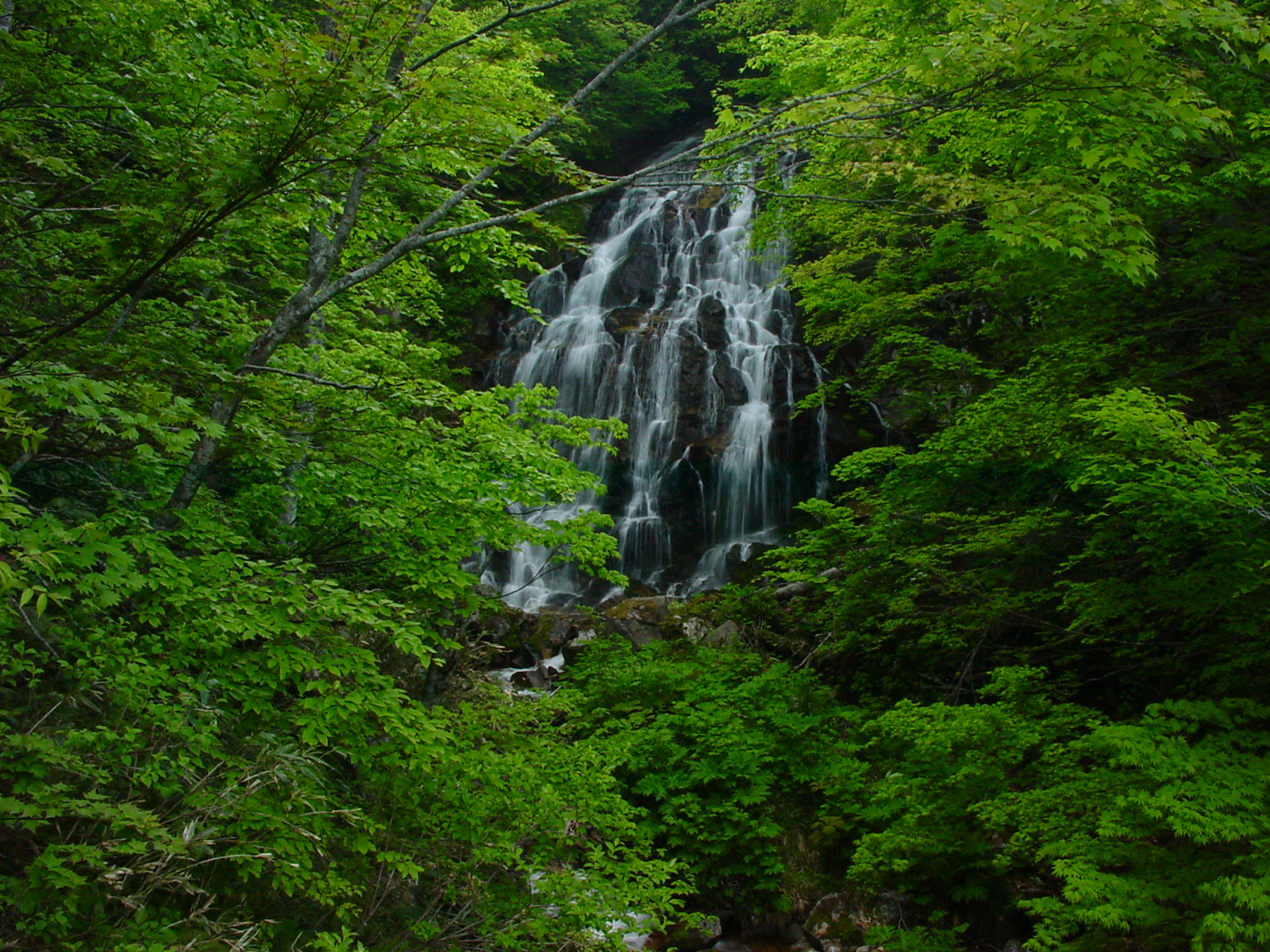 白布温泉から3km位、西吾妻スカイバレーラインを上ると赤滝、黒滝のすぐ先のカーブ右側の道路沿いにある目立たない小さな滝。