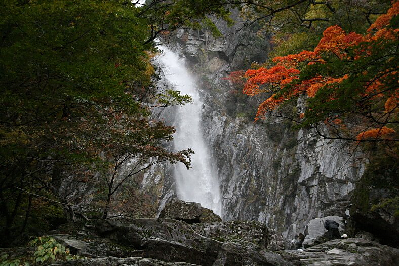 途中の高巻き路から見える「犬吠えの滝」や「魚止めの滝」も大水量。