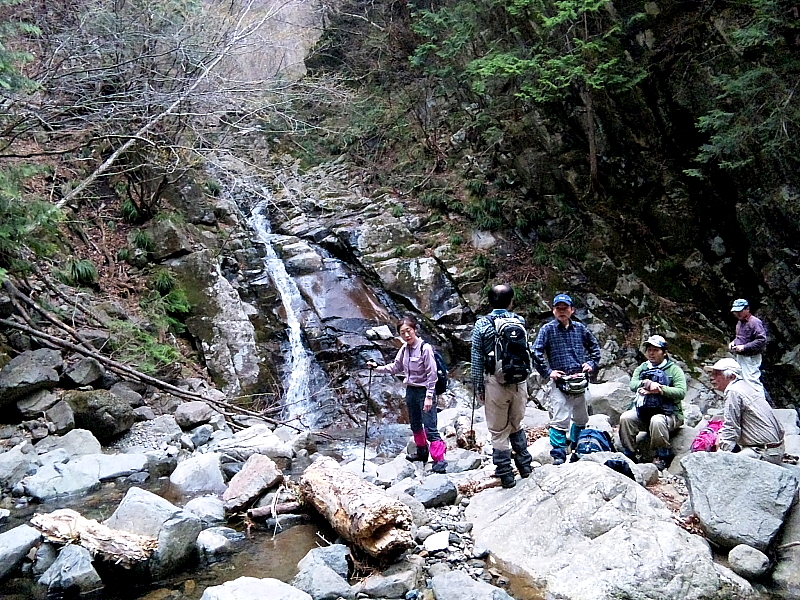 この日の参加メンバーの南沢での休憩風景。