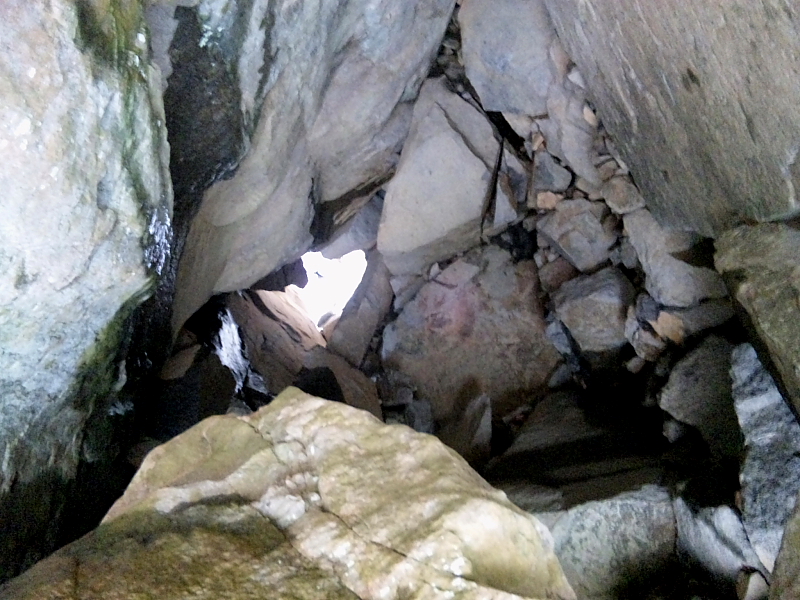滝前ステージ大岩から滝壺にぬけられる。