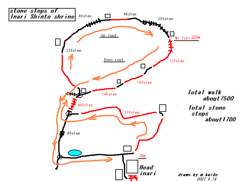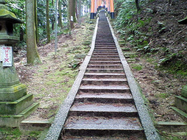 翌日数えてみたら約1000段と判った。 四国の金毘羅神社が約1350段という。 |