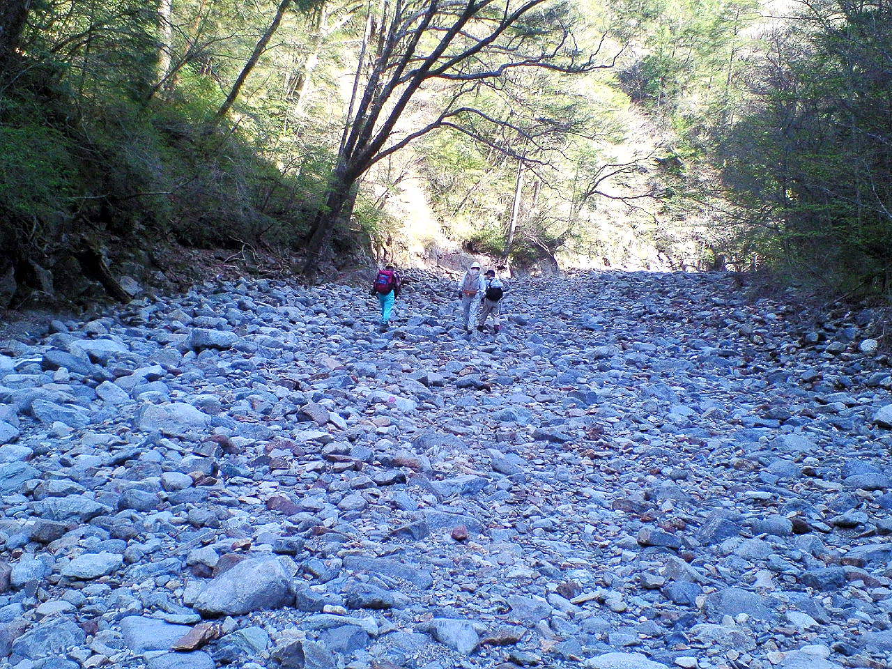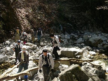 河原を歩いて出発 8:05 |