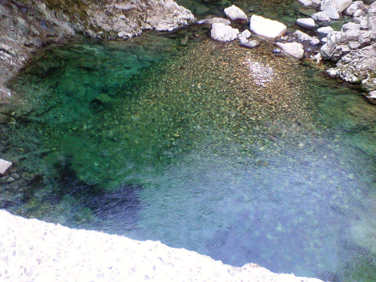 堰堤の下の水 澄んでいる |