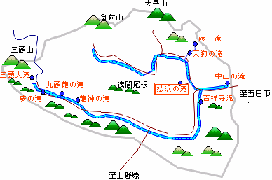 払沢の滝(ほっさわのたき) 2006/10/11 東京都西多摩郡檜原村(ひのはらむら)本宿 落差:全長62m(4段)、最下段の滝(26m) 滝の向き:東 秋川源流の里・檜原村(人口約3000人)には「払沢の滝」をはじめ、南北両秋川に流れ込む沢に多くの滝がかかっています。 その中の一つが払沢の滝への遊歩道の元郵便局建物を移転活用した木工房「森のささやき」というクラフト&ファニチャーショップのベランダから見ることができる「天狗の滝」(落差38m)です。この滝までは千足バス停 から 40分 で行けるといいます。「森のささやき」の中島さんが熱心な滝ファンですばらしい写真を撮り続けておられました。 |