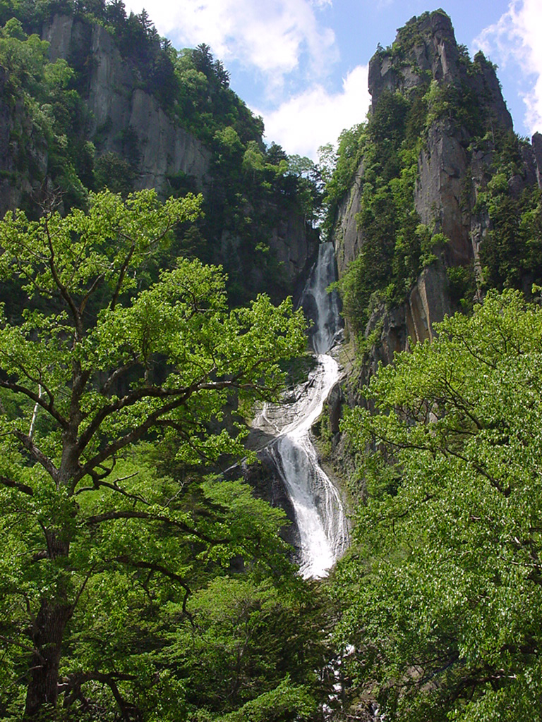 左側の銀河の滝(雌滝)は落差104m