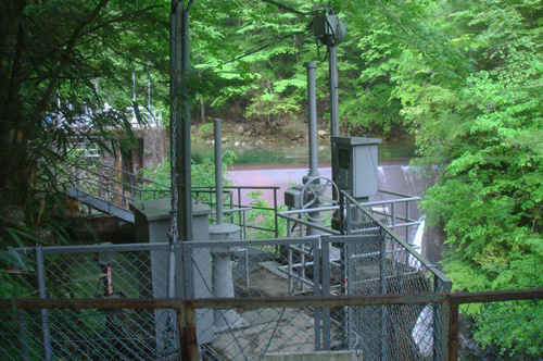 ・6:53 ガマ滝上のダム横通過。 :・・・(1時間53分経過) |