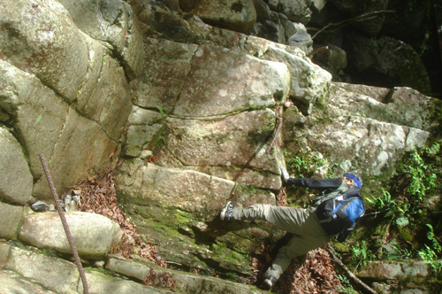 ・8:00〜8:30 岩の向こうに直角曲がり。爪先がはずれそう〜(^^ゞ :・・・・(3時間〜3時間半経過) |