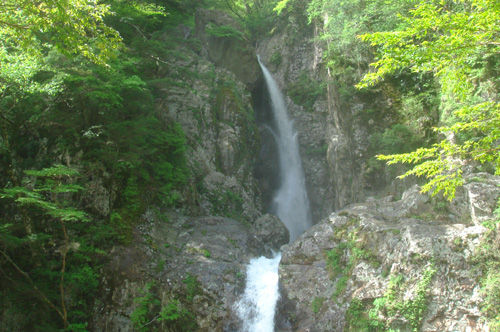 ・8:36 一の滝、二の滝前到達。大迫力!! :・・・(3時間36分経過) |