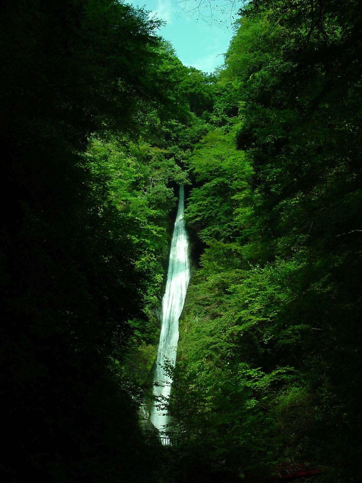 洒水の滝(しゃすいのたき) 2006/10/11 神奈川県足柄上郡山北町平山 落差:3段落差合計114m、一の滝:69m、二の滝:16m、三の滝:29m 滝の向き:東向き 洒水の滝のある山北駅は明治の中期、東海道線の開通とともに箱根越えの基地駅として開業し、機関庫が置かれ、一時は総勢約600人が働いていたという地。 当日最勝寺境内の赤い橋の手前の名水の注ぎ出口まで行くと「落石進入禁止」の標示で進めない。その場から一の滝の二段の上半分だけを拝ませてもらい撮ってきた。 「新編相模国風土記稿」では「蛇水の滝」と記されているというが、2段で落差69.3mと言われる「一の滝」の捩れ具合に蛇を連想し「蛇水の滝」としたとしても不思議でないが、それを「洒水の滝」と音読みをひねり出したであろう僧侶もしたたかな賢者と感じ入るのだが・・・私だけの邪推だろうか。 洒水は密教では浄を念じた香水をいうのだそうだ。二の滝以上をみることが出来ないのが残念だ。 赤い橋になじめない私には青空が冴えていたのがせめてもの慰めだった。 |