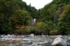 更に上流の"五色の滝"を目指して2km程進むと駐車帯(5台位)標識と遊歩道の階段3分程の先に観瀑台がある。