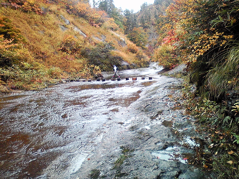 こちらは「桃洞横滝」からわずか上流でトウド沢を左岸から右岸に渡る「飛び石橋」?。