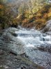 "桃洞・赤水の分岐(40分程)"を過ぎ「桃洞滝」残り500mの地点から石床川原の道となり、一度(飛び石橋?)で対岸に渡りその先のカーブを曲ると間もなく「桃洞滝」が見えてくる「野生鳥獣センター」から全60分程のコース。