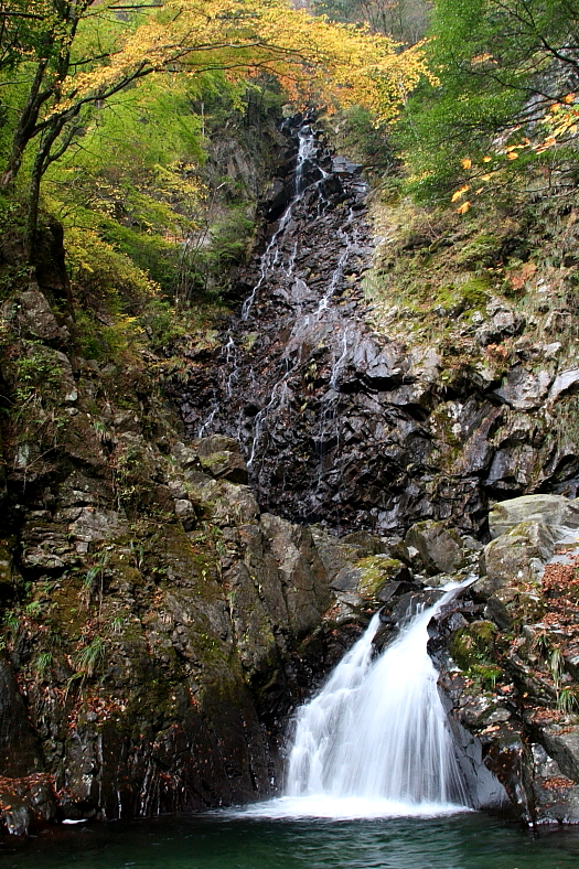 夫婦滝 2011/11/13 愛媛県西条市丹原町明河 鞍瀬渓谷 落差:雄滝20m、雌滝25m 滝の向き=北西 9月末頃「紅葉の石鎚三名瀑」のお誘いが、おいわさんから届いた。 5月の連休に「御来光の滝、おたるの滝、大樽の滝、唐岬の滝」とご案内頂いた際、秋に「紅葉の石鎚三名瀑連日ツアー」の話があったが(さすがに3日連続はやめました。)と書添えされていた。 11月3日、6日、13日と計画され参加するなら未だ未踏の13日「夫婦滝」と思っていたのだが今年に入ってから体調が目に見えてダウンし夏バテも尾を引いていた。 暫く体調様子を見ていたが、うずうずする気持ちには勝てない。 「夫婦滝」参加と返事した。 |