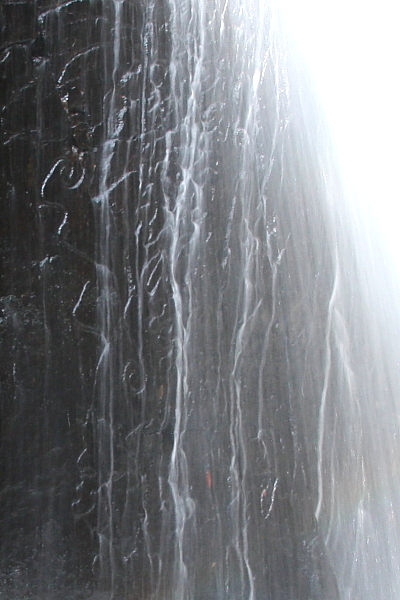 帰還して写真をみていて「屏風ケ滝」の裏の岩に何か彫刻がされていることに気づいた。