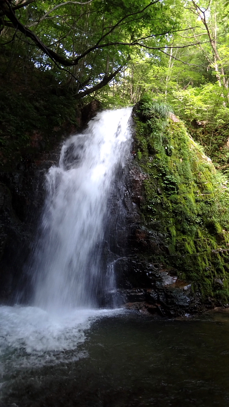 帰還後のネット情報では、滝正面の岩に小さな隧道が掘られていて少し下流側から正面に出られるようだ。