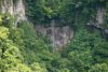 右側の深く切れ込んだ沢上谷に落ちる滝達の遠望。