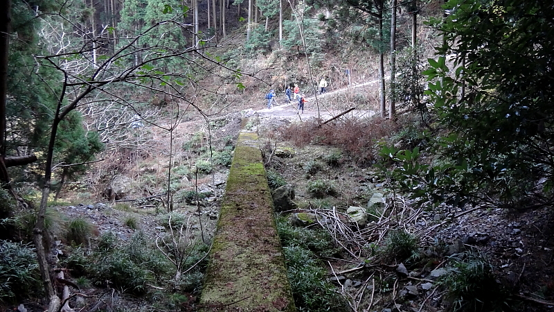対岸の人影が当日の参加者で傾斜した林道を登ろうとしているところです。