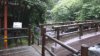 駐車場奥の"源太橋"を渡り以後クランク型に坂を右に登った先で短い人工穴に曲がり出口から長さ51mの急傾斜赤色”けさかけ橋(吊橋)”を下り右に曲がった下流側展望台に10分程で着く。