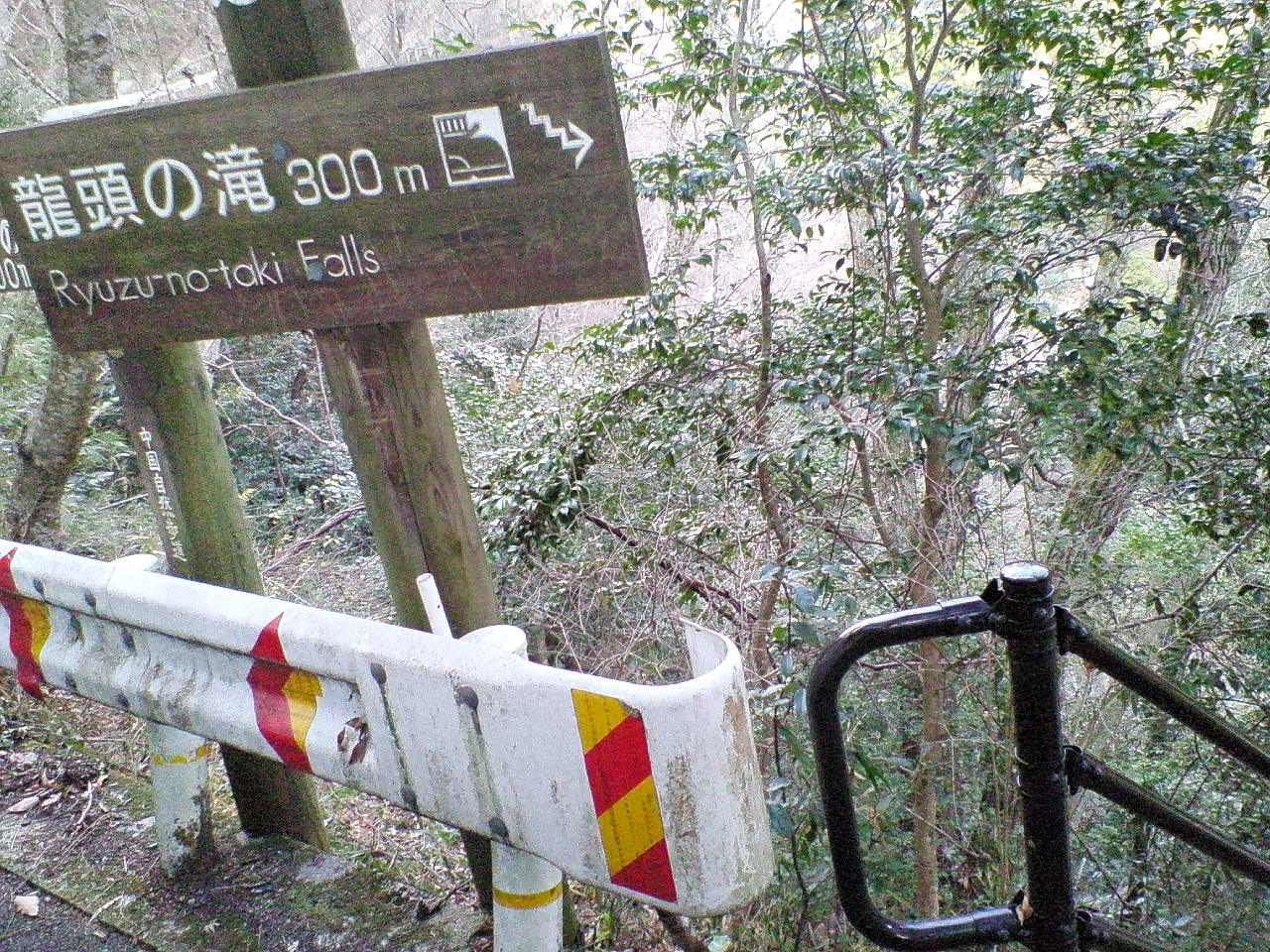 この道路脇標示板から急階段を下る。