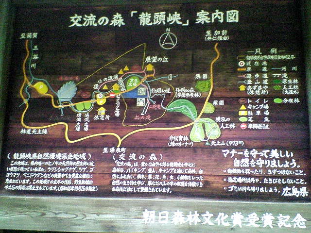 龍頭峡の滝 2008/07/13 広島県安芸太田町大字中筒賀 筒賀川支流 三谷川 落差: 「多羅多羅の滝」を発ち1時ころ交流の森「龍頭峡」最奥部の駐車場所に到着。 橋の傍から渓谷に歩を進めるとポツ、ポツが急にザ〜に変わる。 「二段滝」を撮って車に返る。 雨で身体を洗う。 どうしようもなくびしょ濡れのまま「グリーンスパつつが」でこの旅二回目の風呂。 「道の駅・来夢とごうち」で様子見してもう一度「龍頭峡」に行ってみるが渓谷は雨のまま。 仕方なくR433を北上「道の駅・豊平どんぐり村」にP泊の歩を進め5時過ぎ到着。 出発以来8日間も雨に当たらなかったのは幸運だったと話ながら久しぶりに涼しい静かな夜。 |