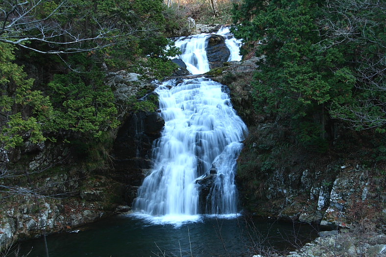 この滝だけ見るためなら道路から急斜面を降り川を横切ると滝壺前から見られる。
