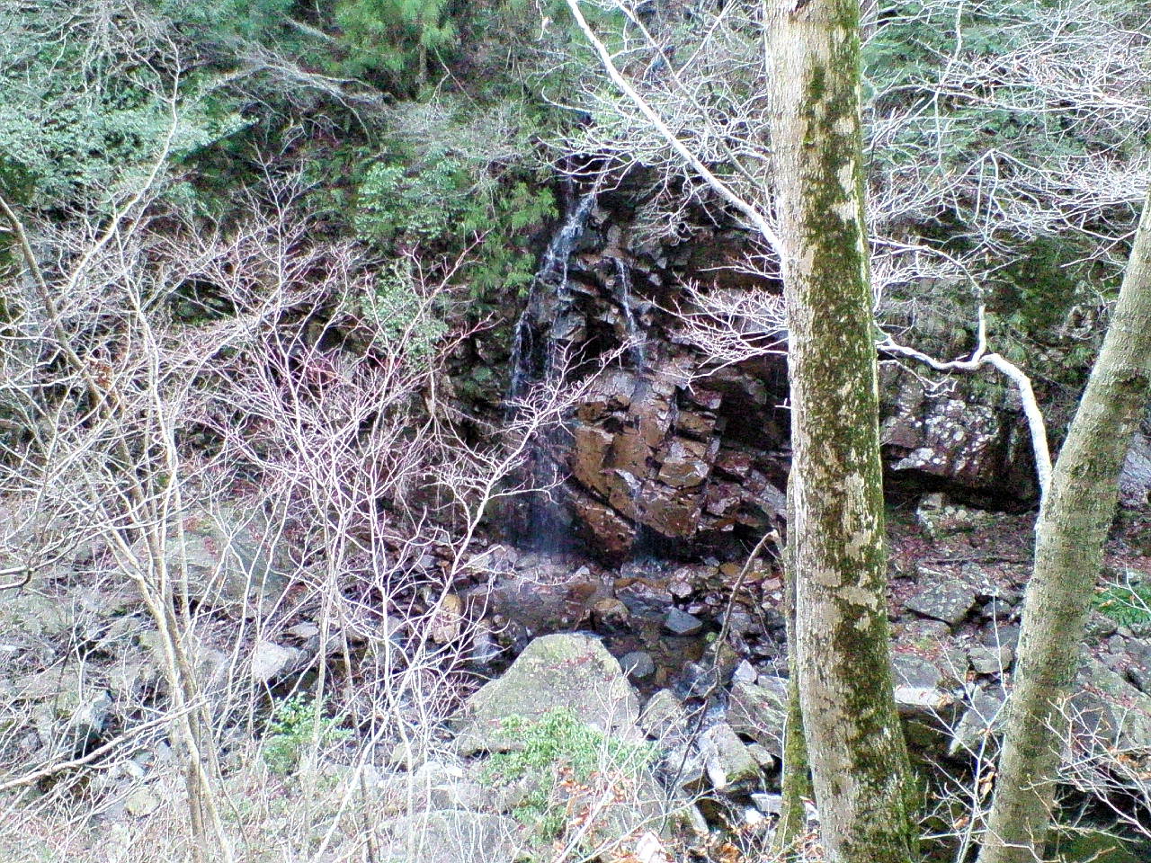 上餅ノ木口から20分程上流の遊歩道対岸に見える滝。