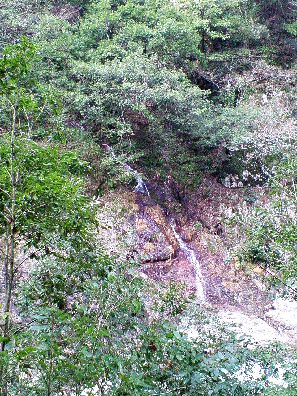 三段峡正面口から28分程で対岸の山の中腹から流れ落ちる滝。