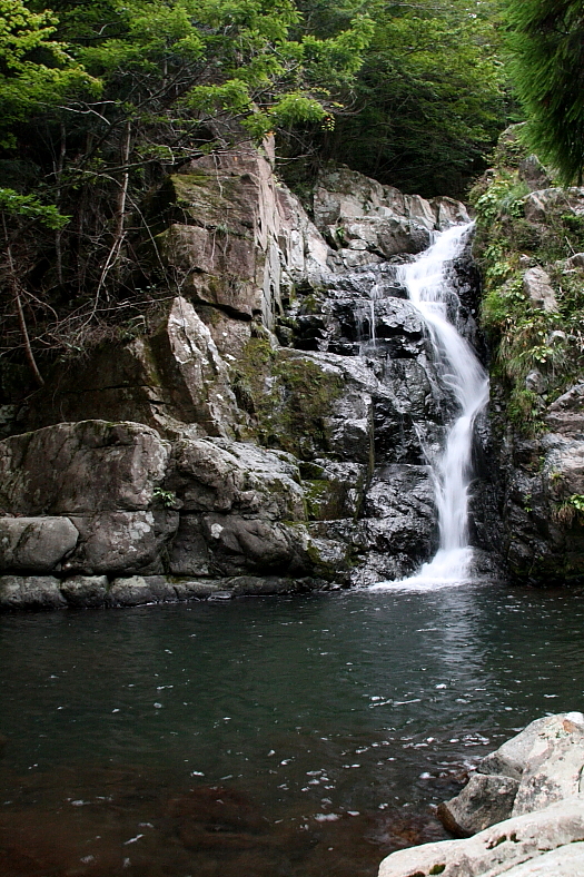 滝左岸の高台から滝壺に降り立つと大きく綺麗な滝壺に出会えやっと滝らしい滝に出会えた思いが込み上げる。