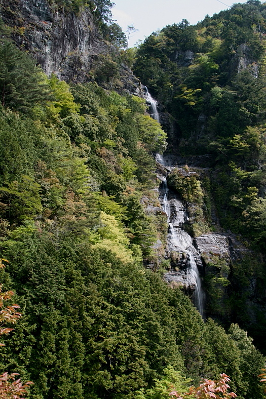 西滝 2009/05/02 高知県吾川郡いの町清水上分 枝川川支流 落差:西滝(赤滝):?m、東滝:?m、にこ淵:7m枝川川本流 寒風山の”一の谷やかた”を8時半ころチェックアウト。 一路R194を南下し9時前に枝畝トンネルを出た”西滝遠望ポイント”で見ると”権現滝””大樽の滝”には水が落ちていない様子だ。 ひろっさんの車に集約乗車し9時15分西滝の遊歩道入口に到着。 西滝0.76km、権現滝0.89km、大樽の滝1.63kmの標示。 最下段から見上げた山の傾斜が脳裏を過ぎる。 (おいわさん)「面河の地獄の登りにくらべればどってことないでしょ(^^♪」 予想通りあえぎあえぎ西滝展望台到着15分程。 (おいわさん)(ひろっさん)に着いてたら以外に早い。 どうも歩きのリズムがあるようだ。 |