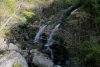 「長又の滝」:愛媛県西条市からR194南下し寒風山トンネルを出て1km程を鈎形左折した一の谷旧194号線に入り県境の寒風山隋道を目指しジグザグ道を上昇して行く。2〜3km程行った右手の「林道寒風大座礼西線」の道路標柱を右折して土道を3km程で長又橋の左側に二筋になって落ちる滝。