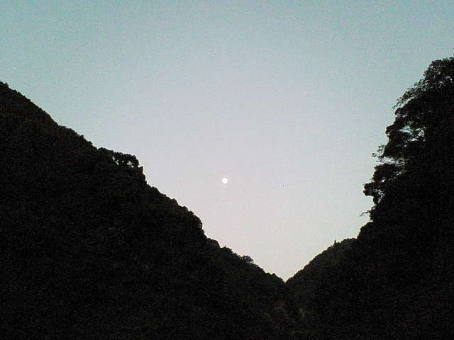6時過ぎの渓谷には誰もいなく空に満月がのぼっていた。