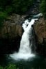 駐車場から白川が直角に曲った位置に落ちる滝が遠望できる。