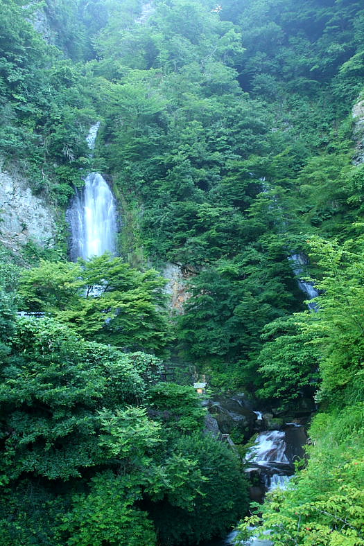 橋の上から見上げる何の感動も沸かない滝の流れに早々引揚。