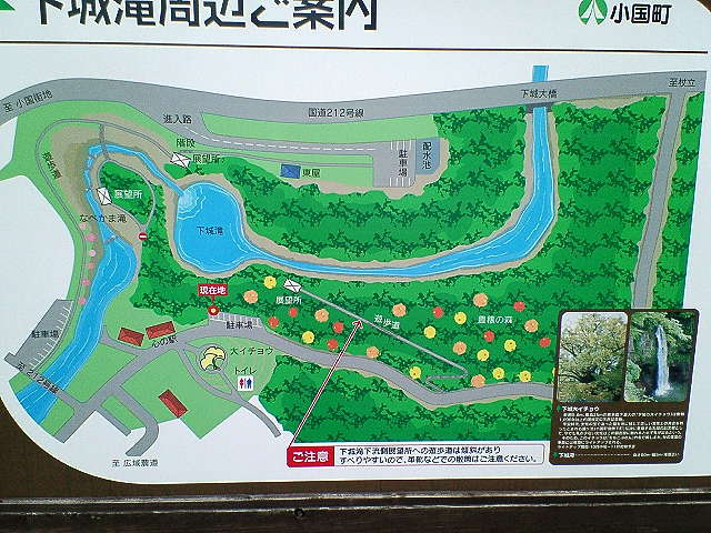 R212から「下城滝」滝上や「鍋釜滝」の展望の駐車場に入れるようだ。