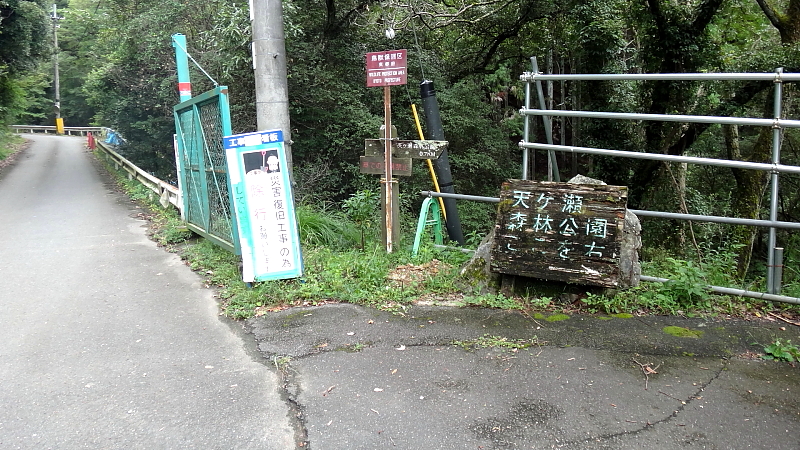 この右折表示の直ぐ裏側に「志津川の滝」は落ちる。