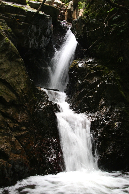 滝壺の前の出っ張った左岸岸が邪魔で正面から撮れない為靴を脱ぎ滝壺に近づき撮ったのがこの画像。