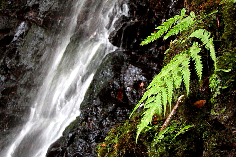 ひぐらしの滝 2009/11/06 京都府京都市右京区嵯峨清滝月ノ輪町 落差:10m 七合目休憩小屋から少し登った左手に(ツツジ尾根)と教えてくれた(米買い路)に出合う急降下路の入り口(標示は無い)がある。 この半端でない急傾斜を(20分程かかっただろうか?)延々と下っていった。 この登り返しはかなりの体力が要ることが解った。 米買い路との出合い(荒神峠(庚申こうしん?))に出た。 問題は(明神谷へのトラバース口)だが左を注意して(長坂谷)を降りだして百メートルそこそこで左手に消えかかった相当注意しないと見過ごす踏み跡がみえた。 多分これだろうと目星をつけて今日のところは(長坂谷)を下って清滝川沿いの(落合い)に出る路を下って行くことにした。 (長坂谷)も延々と下るが踏み跡はしっかりした比較的緩い登山道だ。 それもそのはずで江戸時代以前から近在住民の生活路だった歴史の路なのだが現在では登山者以外ほとんど使っていないため崩壊箇所が多い。 かつては(荒神峠(庚申こうしん?))には、出店まであったというから驚きだ。 |