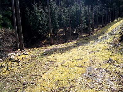 テーマB左俣谷は「毘沙門の滝」から上流に5分程林道を行くとこの分伎路になる。左の暗く写っている林に入ってゆくと「5m滝」下流の小滝群に劣らない素晴らしい谷だった。 多分「菩提の滝」の上流に通じる登山道に出ると思われる。 右俣谷の水量は枯れる寸前の状態だったが林道は地図によると高山寺に通じている。 又、登山道は「菩提の滝」上流のため池「沢の池」に通じているようだ。 |
