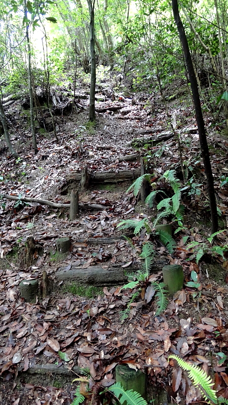 表示板が現れ右下の急階段を谷に向かって降りると滝前に着くが長寿の方はこの階段は登り返しが心配だ。