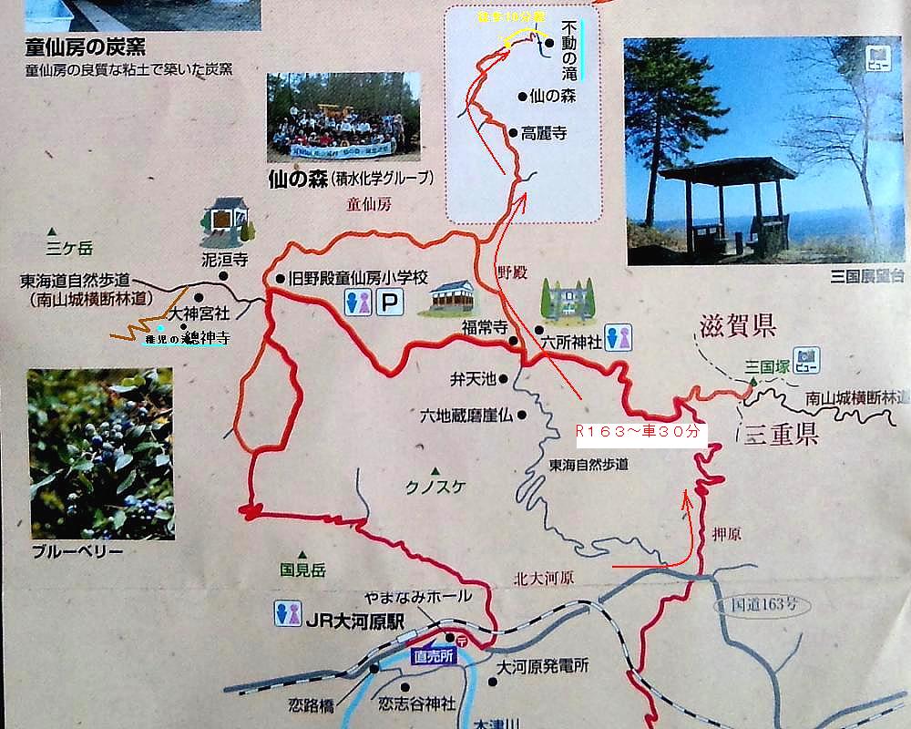 次に探索した「稚児の滝」を地図の左端に添記しておきました。