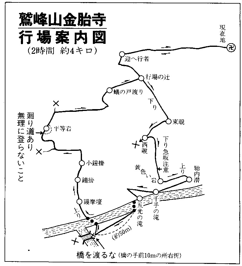 "行場案内図"に沿って、老体の我々も挑戦してみた。 再度は望まないハードな路だ。