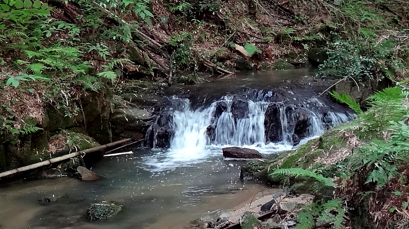 駐車スペースの直ぐ傍に発見した簡易造り階段で河原に降り上流を目指すと10分程で先ずこの「F1小滝」に遭遇。