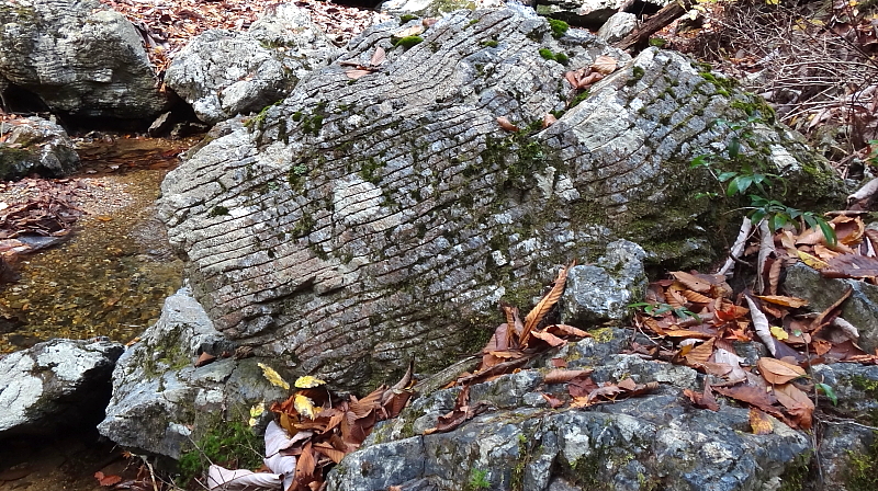滝壺下のこの岩の表情にしばらくみとれる。