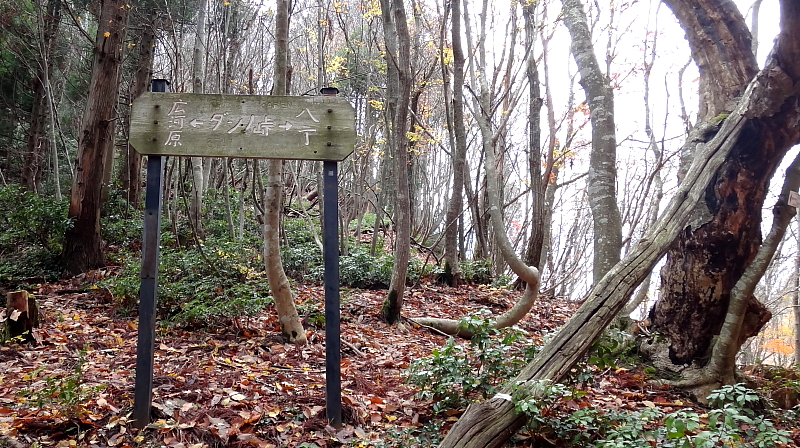 ダンノ峠(769m標高、ここまで約2.8km、1時間程)に着く。